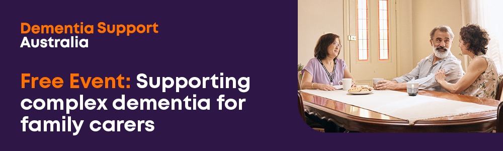 Dementia Support Australia, a nationwide dementia behaviour support program, invites you to a FREE LOCAL EVENT for family carers who are supporting a person living with dementia. In this informative and empowering session, you’ll gain practical information from dementia specialists on changes to mood and behaviour, understanding the diagnosis, caring for your wellbeing and the important resources available to you. You’ll have an opportunity to ask questions of our expert panel. Stay for light refreshments and talk with members of our team in a friendly and supportive environment.